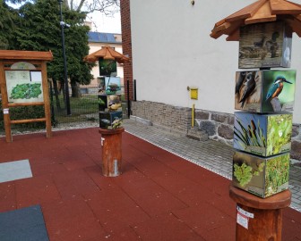 Na świeżym powietrzu, w otoczeniu zieleni, czeka przestrzeń pełna przygód i odkryć. Duże układanki i puzzle rozbudzają ciekawość, a barwne totemy z rybami i ptakami wodnymi pozwalają lepiej poznać świat przyrody. Nie zabrakło też kaszubskich nut rybackich – dźwięków, które wprowadzają w lokalne tradycje.