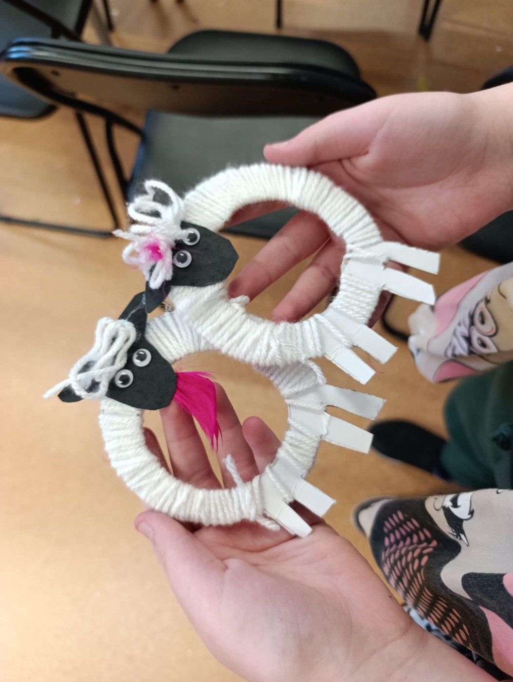 Na tych zajęciach wykonujemy urocze zwierzaki, takie jak owieczki, kurczaki czy zajączki. Do pracy wykorzystujemy papierowe szablony, które owijamy kolorową włóczką. Gotowe prace ozdabiamy oczkami, dodatkami z filcu, cekinami i drobnymi detalami, tworząc niepowtarzalne, bajkowe postacie.